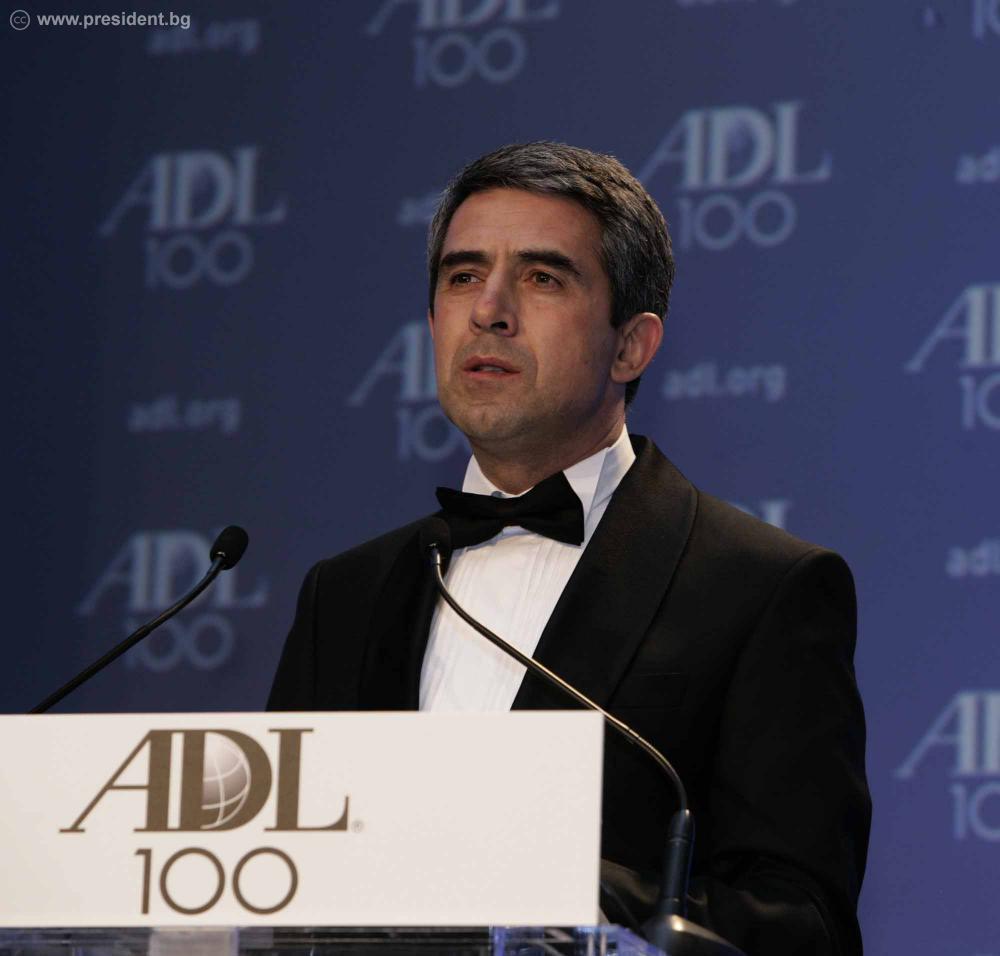 Българският държавен глава беше почетен гост на гала-вечер във Вашингтон по повод 100-годишнината от основаването на Лигата срещу поругаването.