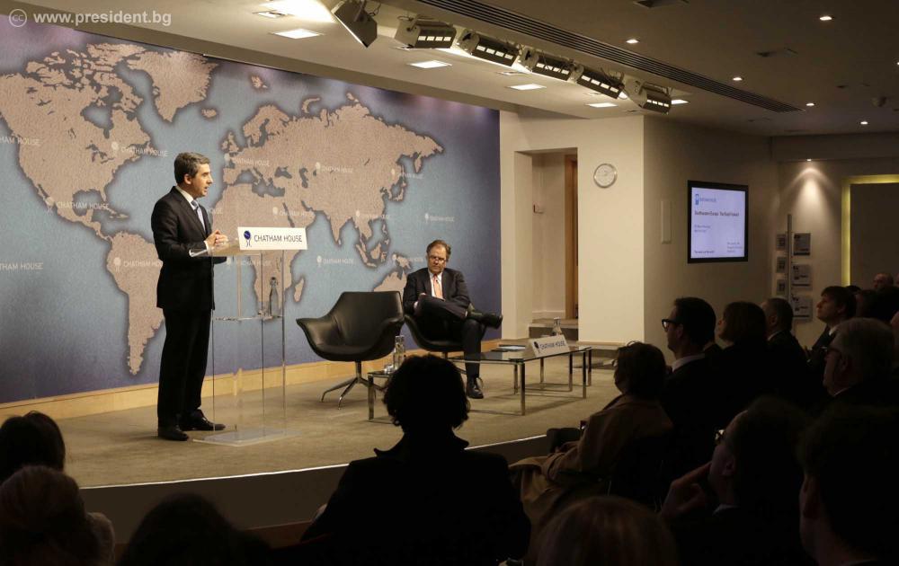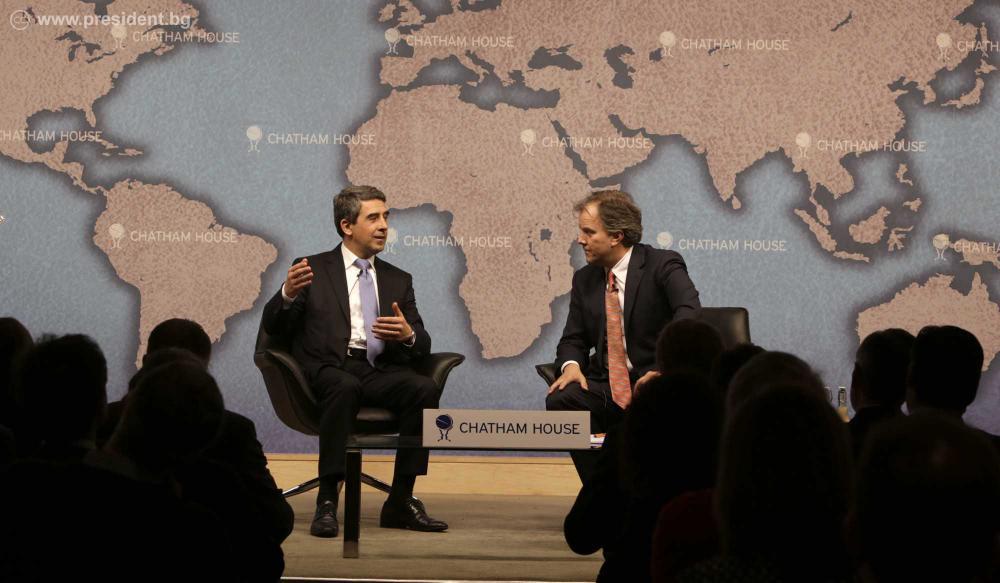Президентът Росен Плевнелиев изнесе лекция в авторитетния Кралски институт за международни отношения \