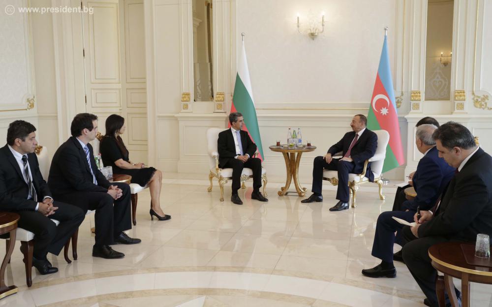 Държавният глава разговаря с азербайджанския си колега Илхам Алиев. Двамата проведоха среща на четири очи, след което се състояха разговори между делегациите на България и домакините.На 20 септември президентът Росен Плевнелиев ще присъства на официалната церемония по откриване на строителството на Южния газов коридор.