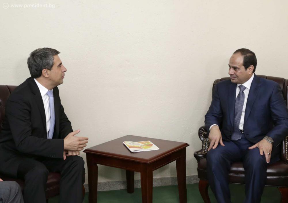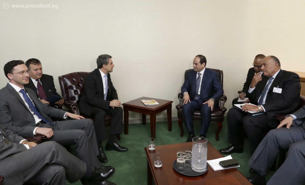 Държавният глава Росен Плевнелиев разговаря с президента на Египет Абдел Фатах ал-Сиси в централата на ООН.
