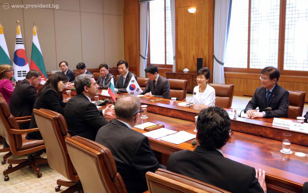 В Сеул президентът Росен Плевнелиев положи венец пред Паметника за героите, паднали за свободата на Република Корея. В Президентския дворец българският държавен глава се срещна с корейския президент Пак Гън-хе. Двете делегации проведоха пленарни разговори.