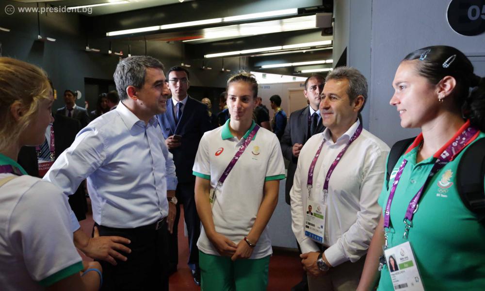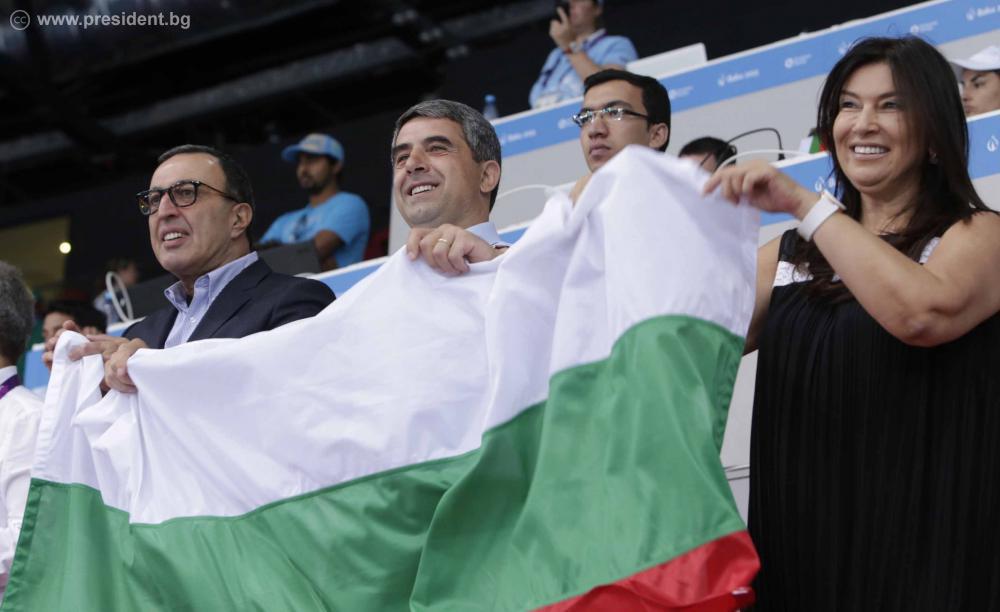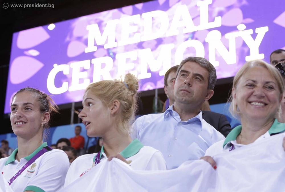 Президентът Росен Плевнелиев присъства на финалната среща по волейбол между отборите на България и Германия на Европейските игри в Баку. Държавният глава е в Азербайджан за закриването на първата по рода си спортна надпревара, в която се включиха състезатели от 50 държави. Президентът поздрави волейболистите ни със завоюваните сребърни медали.