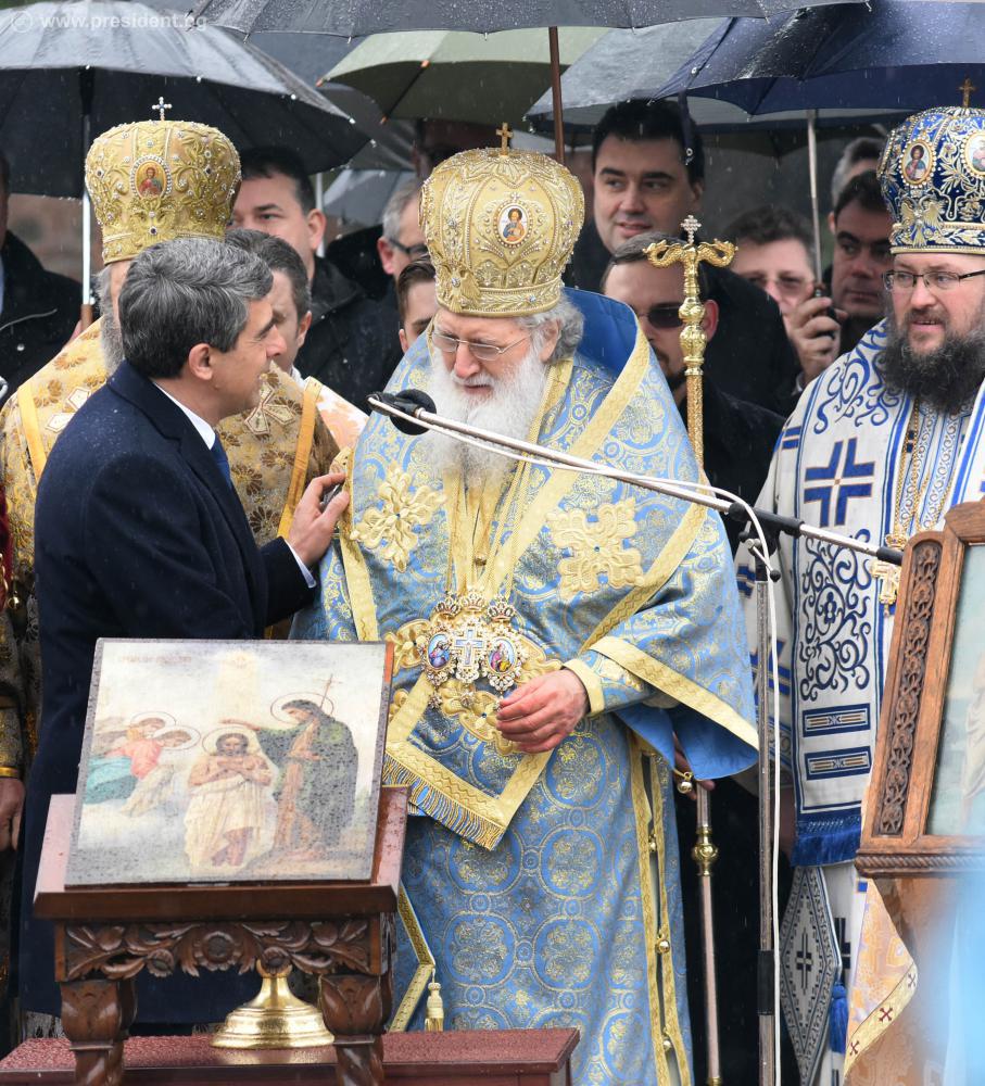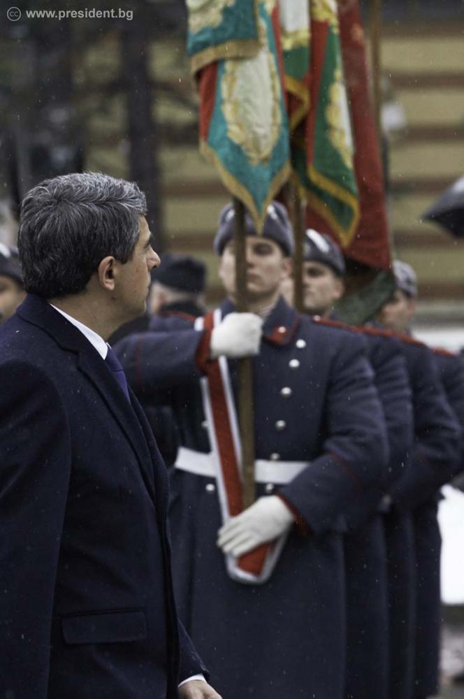 Държавният глава и върховен главнокомандващ на въоръжените сили Росен Плевнелиев присъства на традиционния празничен водосвет на бойните знамена и знамената светини на Българската армия