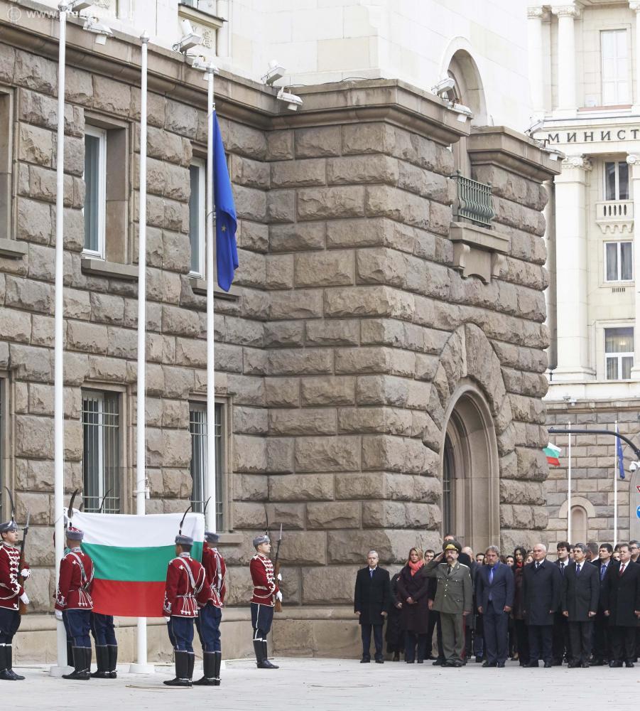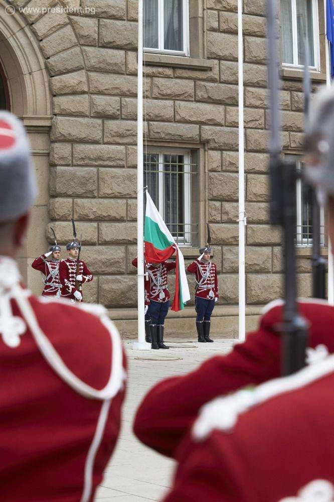 По повод Деня на народните будители пред президентската институция се състоя церемония по издигане на националния флаг. Президентът Росен Плевнелиев прие почетния строй на Националната гвардейска част.