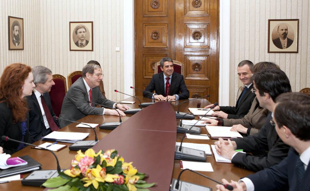 нимка: В. Николов9 февруари 2012 г. Президентът Росен Плевнелиев и екипът му се срещнаха на "Дондуков" 2 с Ричард Морнингстар, специален пратеник на държавния секретар на САЩ Хилъри Клинтън по енергийните въпроси за Европа и Евразия.
