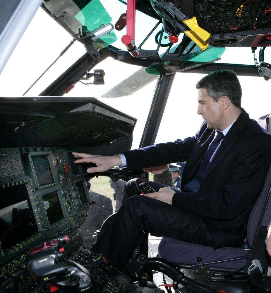 Снимка: В. Николов13 март 2012 г. Президентът и върховен главнокомандващ Росен Плевнелиев посети Авиобаза Крумово, където награди военнослужещите, участвали в спасителните операции в село Бисер. Държавният глава разгледа военната техника в авиобазата.