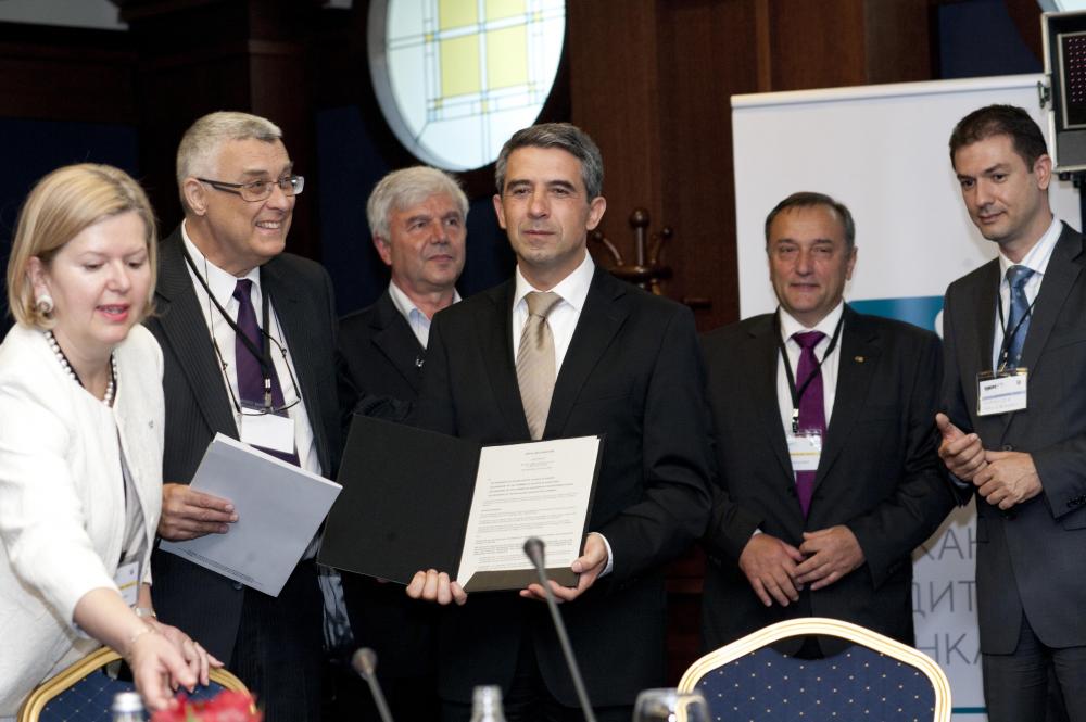 Снимка: В. Николов11 май 2012 г. Президентът Росен Плевнелиев откри в Гранд хотел София кръгла маса “Архитектура плюс”, посветена на модерната архитектурата и качественото строителство. Форумът се провежда под патронажа на българския държавен глава и е организиран от Камарата на архитектите в България със съдействието на Архитектурния съвет на Европа, Министерството на регионалното развитие и благоустройството и Столична община.