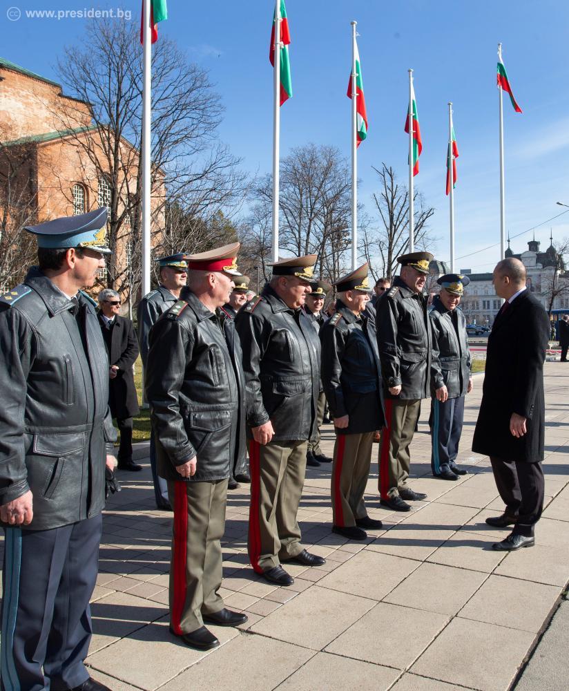 Президентът прие почетния строй на представителните части на Българската армия и положи венец пред паметника на Незнайния воин.