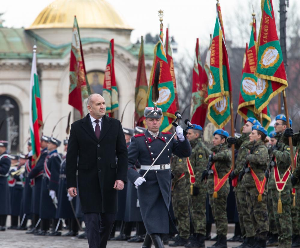 Президентът и върховен главнокомандващ на Въоръжените сили Румен Радев участва в традиционния ритуал по водосвет на бойните знамена и знамената светини на Българската армия. На площад „Св. Александър Невски“ държавният глава прие почетния строй на представителните части на Българската армия и положи венец пред паметника на Незнайния воин.